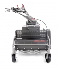 Výrobce: WEIBANGDoporučená cena: 139 990 KčObjednací číslo: 01WBGT6813-TEDistribuce v zemích ČR a SR: ANOParametry rideruParametryModel motoru: BRILLIANT GT 1300PEŠířka sečení: 680 mmElektrický starter: NEVýška sečení: 10-60mmPočet nožů: 38Max. rychlost otáčení nožů: 2 200 m/minRychlost pojezdu: 0-3,8 km/hod vpřed 0-2,2 km/hod vzadKapacita palivové nádrže: 6 lHlučnost: 103 dB(A)Přední kola: 8" otočná okolo své osyZadní kola: PásyHmotnost: 295 kgŠířka balení výrobku: 945 mmVýška balení výrobku: 876 mmDélka balení výrobku: 1 610 mmZáruka: 4 roky PopisWEIBANG WB GT6813-TE cepová sekačka s pásy (Terminátor 2) je hybridní pásová cepová sekačka, která je navržena tak, aby efektivně odstraňovala plevel a vysokou trávu na velkých plochách složitého terénu. Je vybavená benzínovým motorem o výkonu 9 Hp a nejnovějším hnacím systémem hybridního pohonu, dokáže dosáhnout minimálního poloměru otáčení s nulovým poloměrem, což má dokonalou přizpůsobivost k pracovní ploše. Poloha rukojeti je flexibilní a nastavitelná. Rukojeť lze také rychle otočit do strany, aby vyhovovala složitým provozním podmínkám v širokém prostředí. S 68 cm širokým žacím rotorem a ocelovými cepovými „Y“ noži dokáže „Terminátor 2“ během okamžiku zlikvidovat veškerý plevel i na velké travní ploše WEIBANG WB GT6813-TE cepová sekačka s pásy je určena pro sečení vysoko-stéblového plevele na velkých plochách a ve složitém terénu. Je osazena benzínovým motorem o výkonu 9HP a nejnovějším systémem plynule měnitelné převodovky Weibang (CVT). Cepová sekačka je vybavena širokou žací hlavou s ocelovými čepelemi typu Y, díky kterým dokáže během okamžiku osekat všechny velké plochy. Řidítka lze rychle nastavit do vertikální, tak i horizontální polohy tak, aby vyhovovala náročným provozním podmínkám ve složitém prostředí. WEIBANG WB GT6813-TE je cepová mulčovací (kladívková) sekačka vhodná pro likvidaci přerostlé trávy na neudržovaných pozemcích. Pod kovovým šasi vysokou rychlostí rotuje sada kladívkových nožů uchycených na válci, které posečou a podrtí přerostlou trávu, poradí si i s drobnějšími nálety. Cepový válec s noži je přitom zcela ukryt pod pevným ocelovým krytem, obsluha i okolí jsou dobře chráněny. Nože jsou na válci zavěšeny volně na čepech, při nárazu na kámen nebo jiný předmět se proto mohou sklopit. Tráva je přitom několikrát rozmělněna a za sekačkou tak zůstává mulč, který rychle seschne a zetleje. Snadný pohyb v terénu usnadní pásy s hrubým dezénem, ale i pojezd s CVT Weibang převodovkou. Přední kola uložená na otočných čepech dávají sekačce skvělou manévrovatelnost. Tam, kde byste bojovali s trávou pomocí křovinořezu dlouhé hodiny, máte s tímto výkonným čističem hotovo během chvilky. Vybaveno vestavěnou baterií pro pohon elektrického motoru (800 W) pásů pro bezpečné přejíždění, nakládání či vykládání stroje. Příslušenství k dokoupení: Dálkové ovládání pro obsluhu pro sečení v nedostupných místech. Dosah cca 100 metrů ve volném terénu. Ke staženíNávody: wbgt6813te_cz_navod.pdf Obrázky VideoYoutube video: Embedded video for WEIBANG GT6813-TE